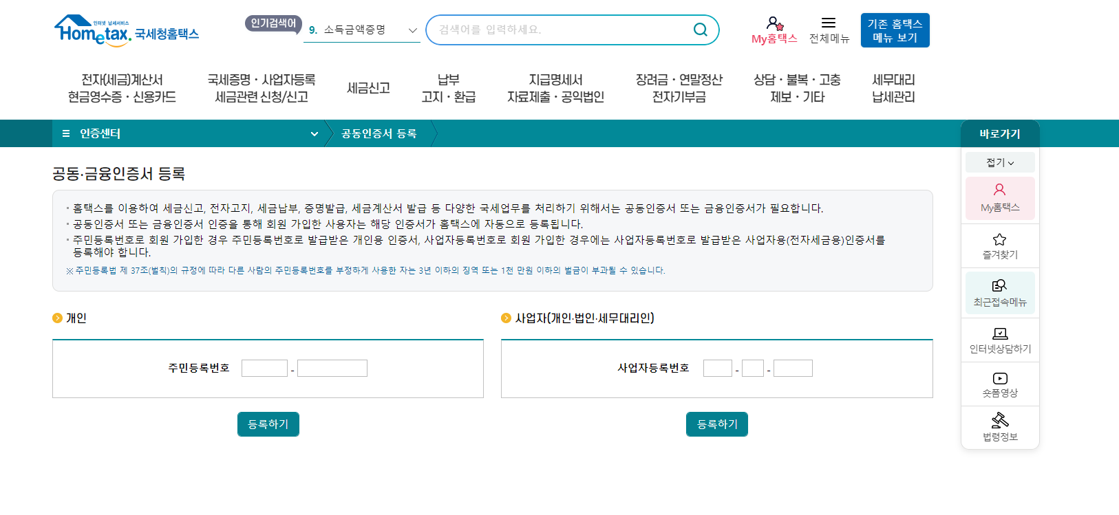 공동인증서 홈택스 등록방법