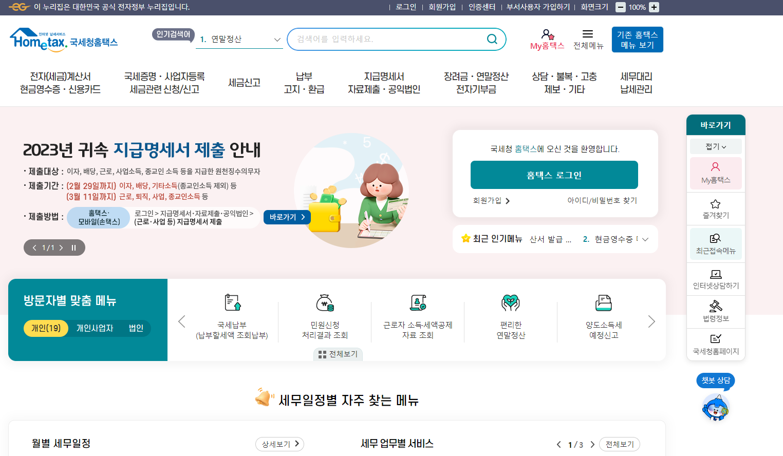1. 홈택스에 접속하고 로그인을 합니다.